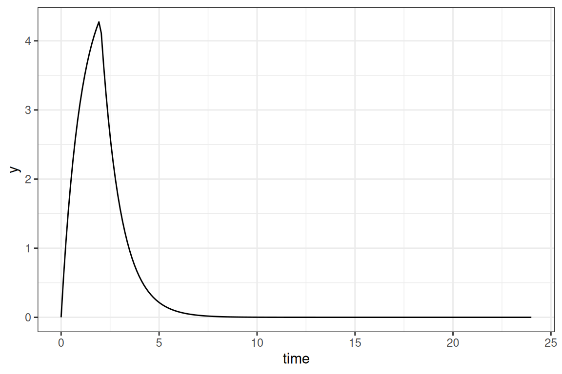 data.frame(mdose(Dose=10,tau=24,ndose=1,t=times,func=ana1CMTiv,